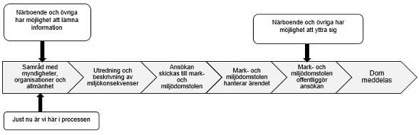 Ansökan skickas in och ansökan om tillstånd enligt miljöbalken för LSR prövas av mark- och miljödomstolen.